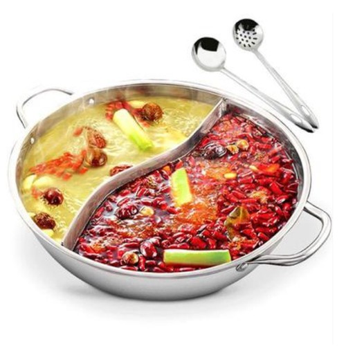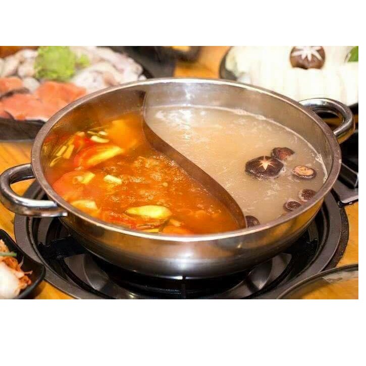 🍵Nồi lẩu hai ngăn bằng inox loại dày dặn, nấu được trên bếp từ