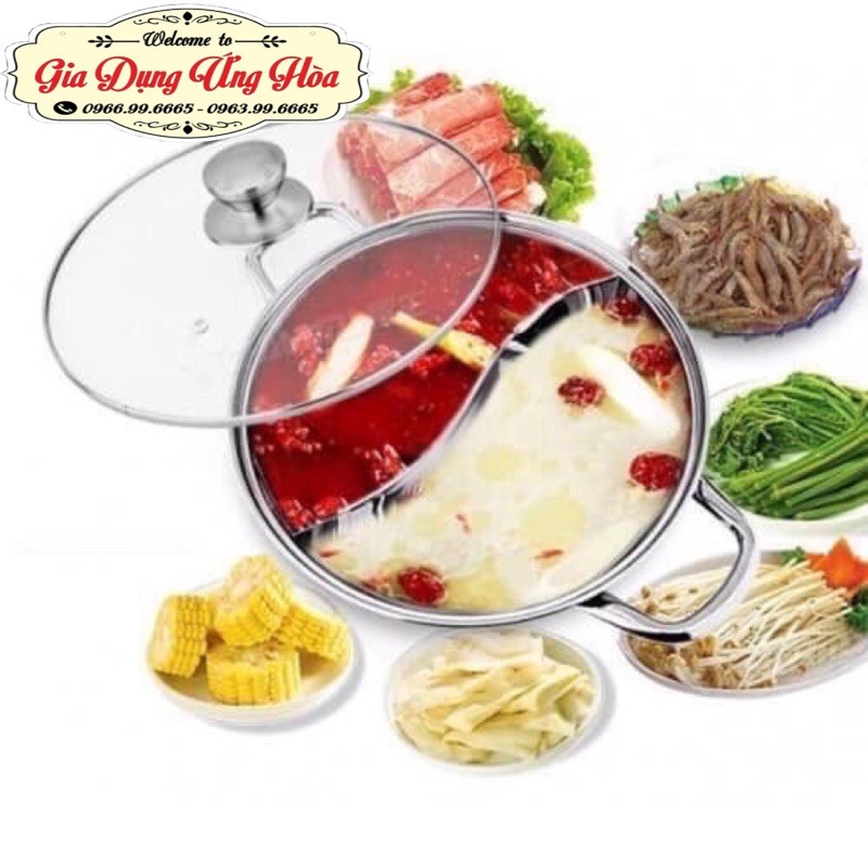 Nồi lẩu 2 ngăn 32cm, nấu được bếp từ nhé có nắp kính (ảnh thật)