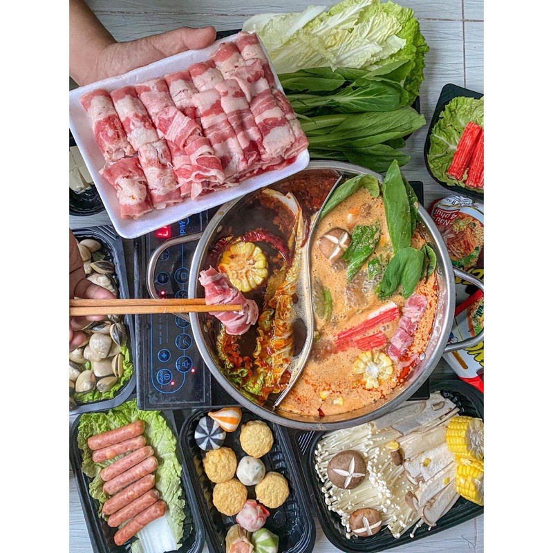 :tea:Nồi lẩu hai ngăn bằng inox loại dày dặn, nấu được trên bếp từ