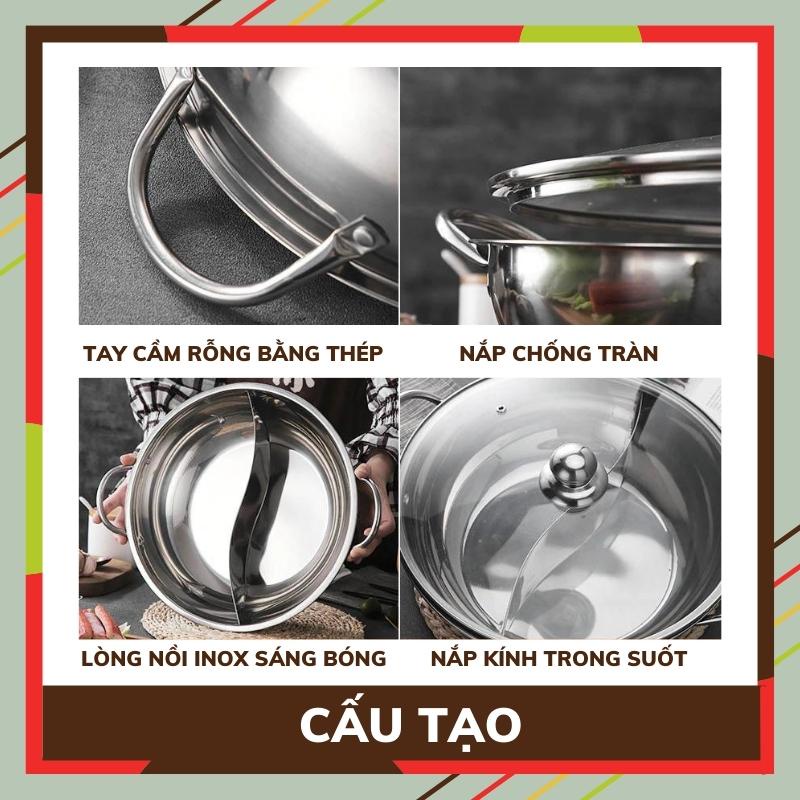 Nồi lẩu 2 ngăn BEHOME Nồi nấu lẩu inox - Nồi 2 dùng được Bếp Từ Làm Nóng Cực Nhanh Đa Năng