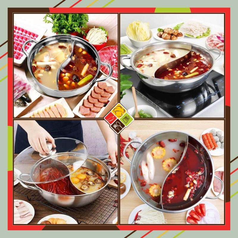 💓BEHOME-MALL💓- Nồi lẩu 2 ngăn được thiết kế với lòng nồi chia đôi thành 2 ngăn bằng nhau, ngăn cách chắc chắn và đẹp mắt.