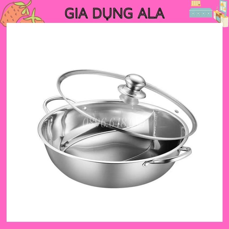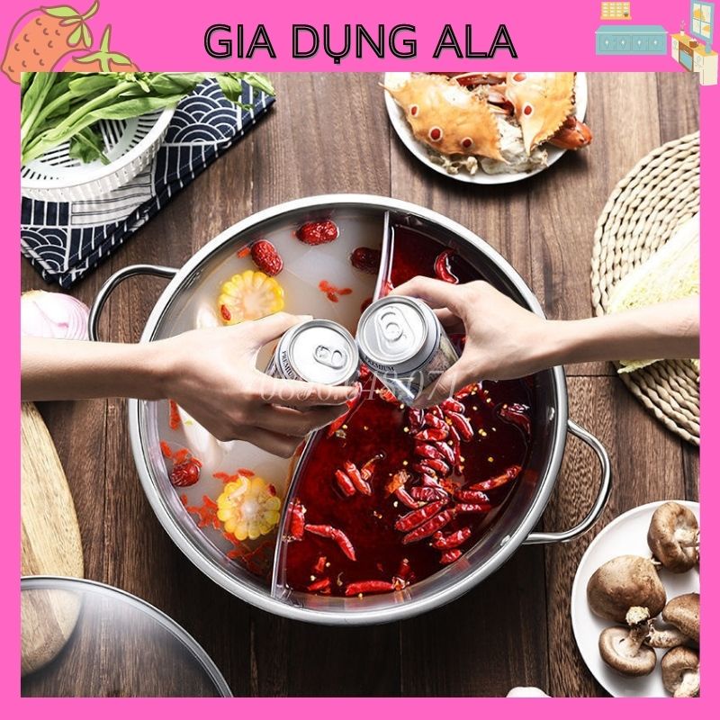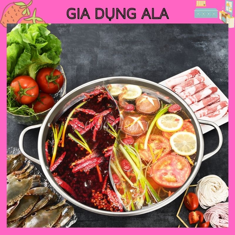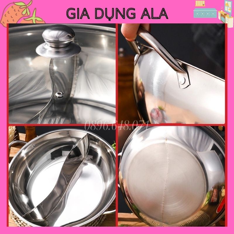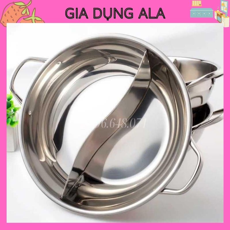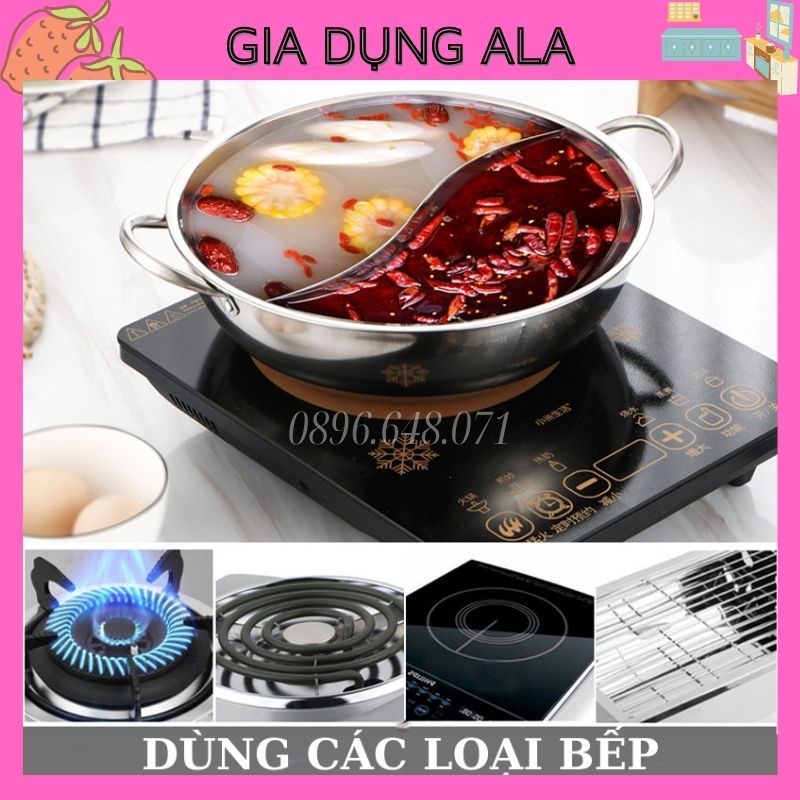 Nồi Lẩu 2 Ngăn Bếp Từ Đa Năng, Nồi Nấu Lẩu Inox Dày Dùng Cho Mọi Loại Bếp
