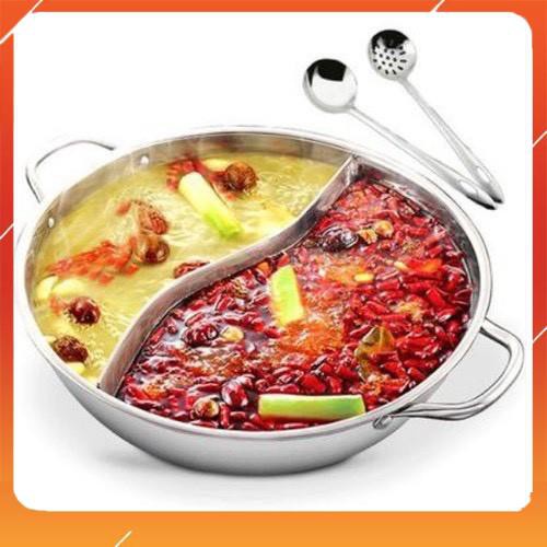 Nồi lẩu 2 ngăn ❤️FREESHIP❤️ 30cm và 32cm, nấu được bếp từ nhé có nắp kính (ảnh thật)
