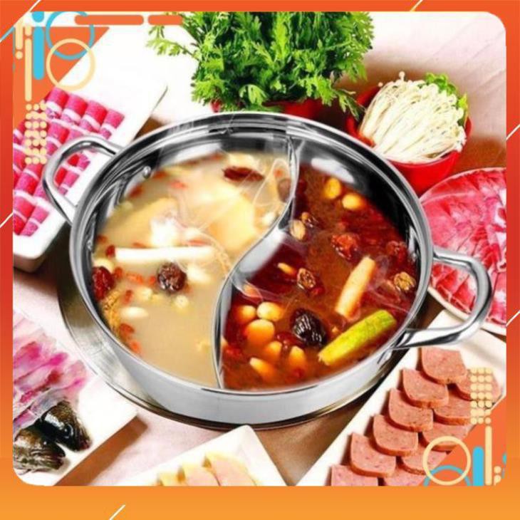 Nồi lẩu 2 ngăn ❤️FREESHIP❤️ 32cm, và 30cm nấu được bếp từ nhé có nắp kính (ảnh thật)