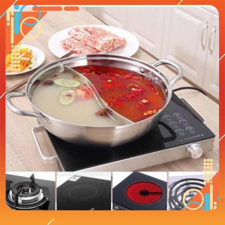 :tea:Nồi lẩu hai ngăn bằng inox loại dày dặn, nấu được trên bếp từ