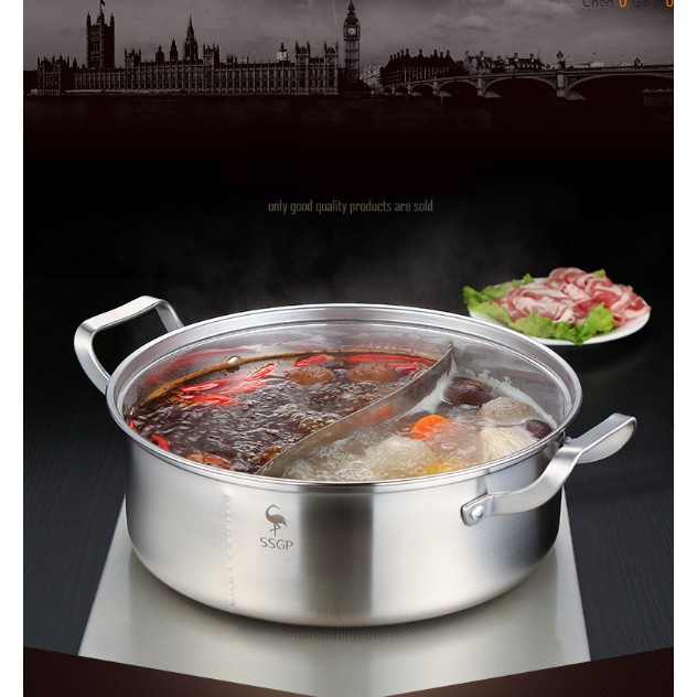 Nồi lẩu 2 ngăn inox 304 có nắp - SSGP
