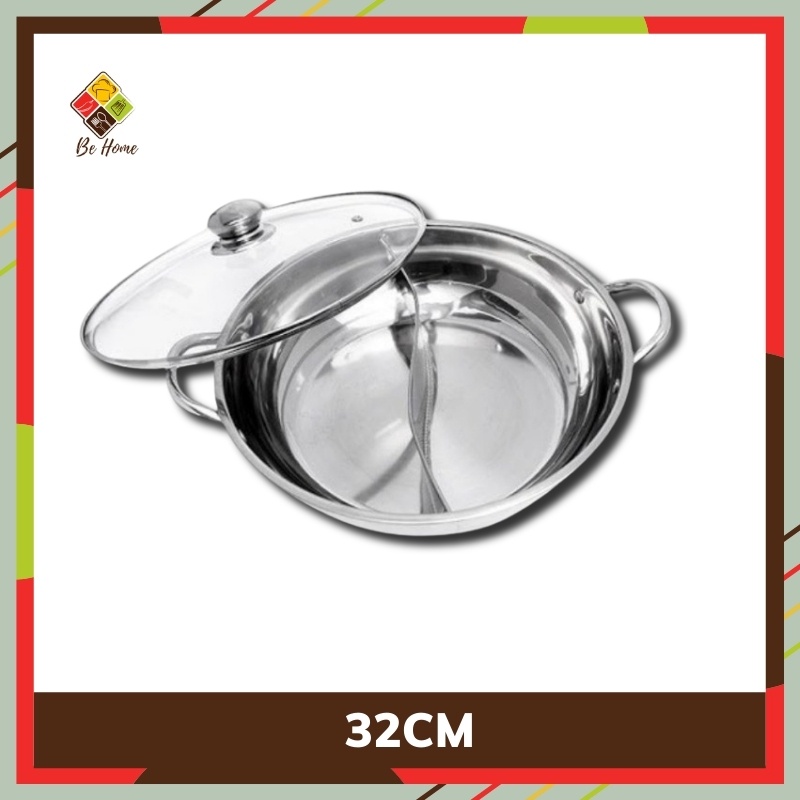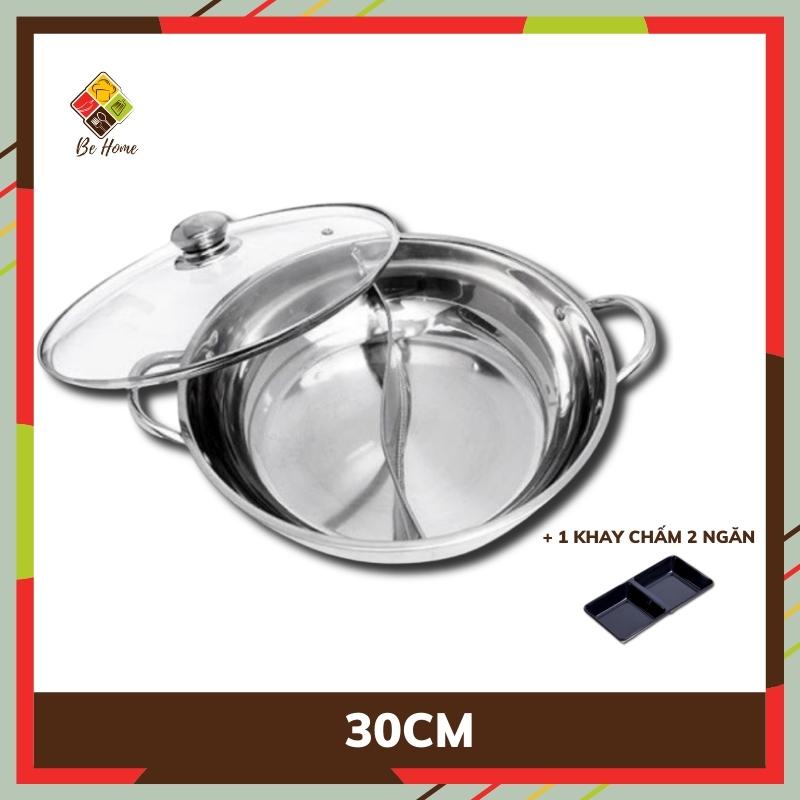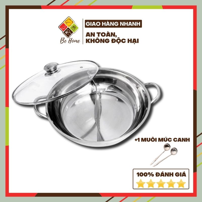 Nồi lẩu 2 ngăn inox BEHOME Nồi nấu lẩu - Nấu được Bếp Từ Làm Nóng Nhanh [TẶNG BỘ MUÔI LẨU CAO CẤP]