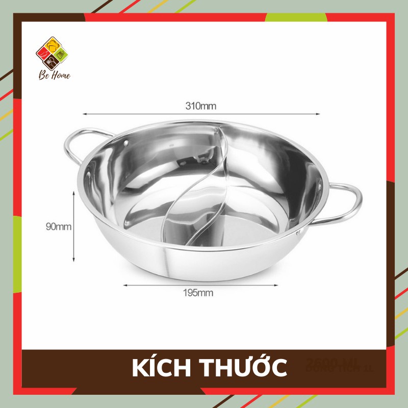 💓BEHOME-MALL💓- Nồi lẩu 2 ngăn inox cao cấp được thiết kế với lòng nồi chia đôi thành 2 ngăn bằng nhau, ngăn cách chắc chắn và đẹp mắt.