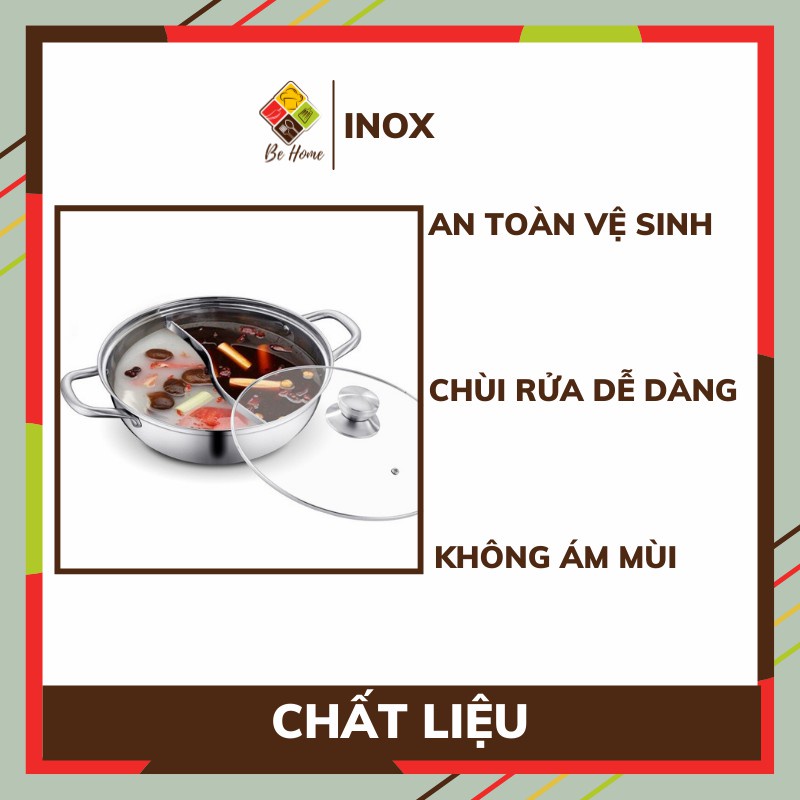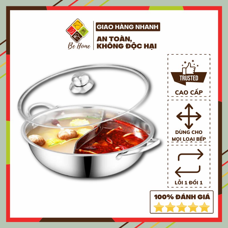 Nhà cửa & Đời sống > Dụng cụ nhà bếp > Nồi || Nồi lẩu 2 ngăn inox cao cấp BEHOME Nồi nấu lẩu inox - Nồi 2 dùng được Bếp Từ Làm Nóng Cực Nhanh Đa NăngCòn hàng