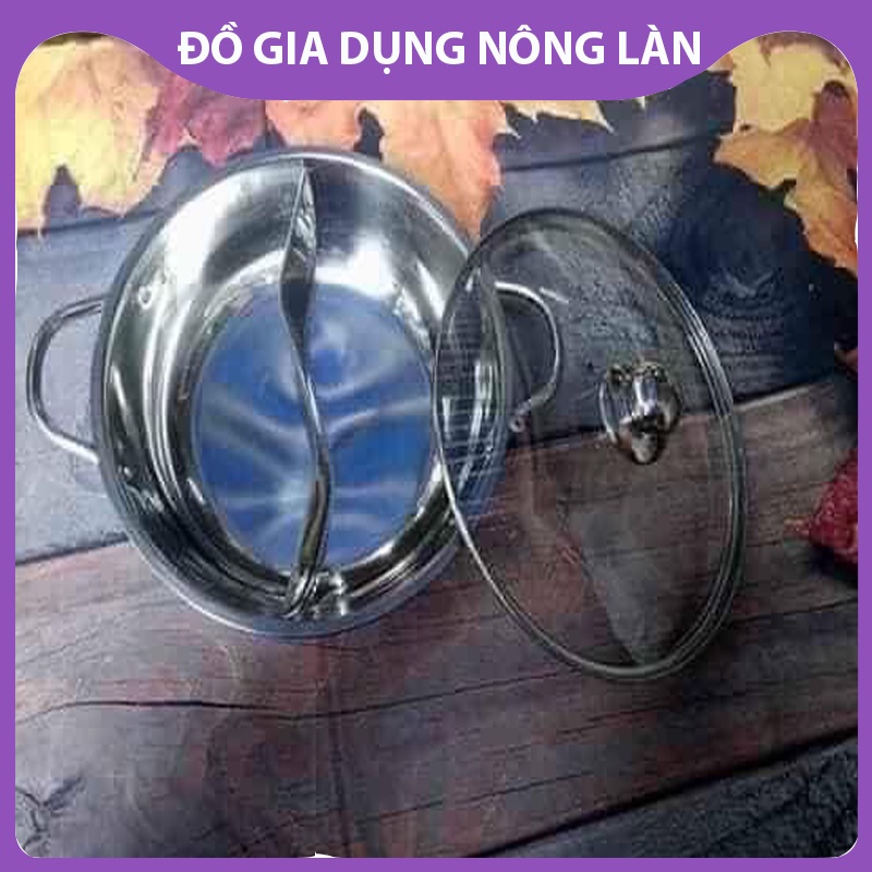 Nhà cửa & Đời sống > Dụng cụ nhà bếp > Nồi || Nồi lẩu 2 ngăn inox NL Shop nấu được bếp từ sáng bóng kèm nắp kínhCòn hàng
