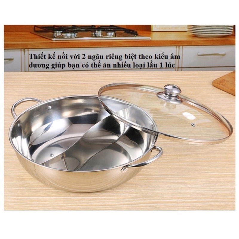 Nồi lẩu 2 ngăn inox size 30cm tiện lợi