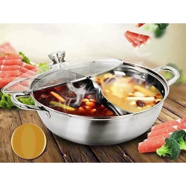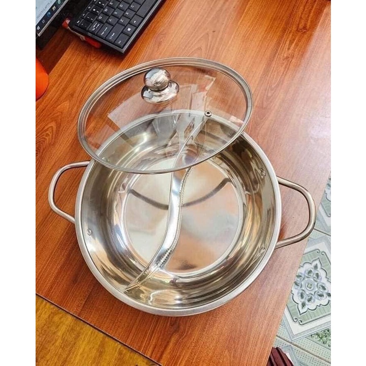 :tea:Nồi lẩu hai ngăn bằng inox loại dày dặn, nấu được trên bếp từ