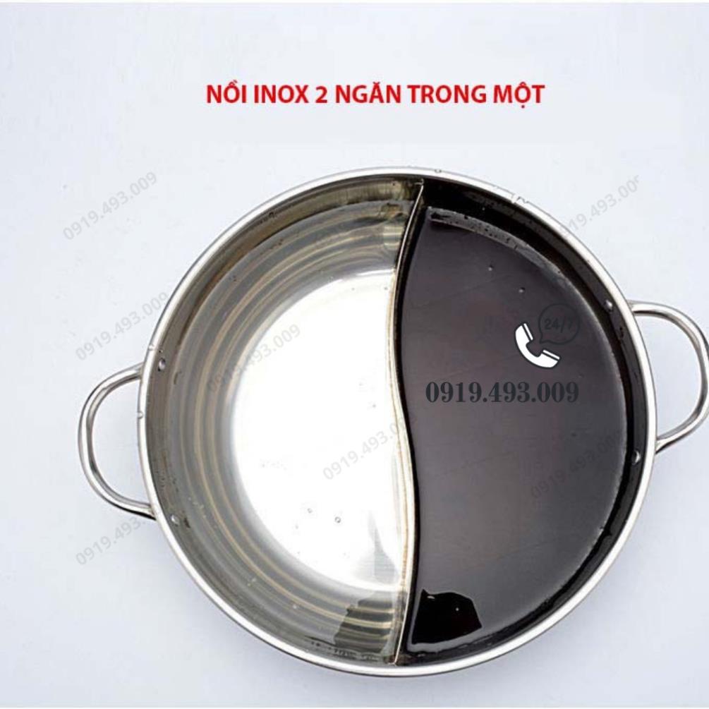 :tea:Nồi lẩu hai ngăn bằng inox loại dày dặn, nấu được trên bếp từ