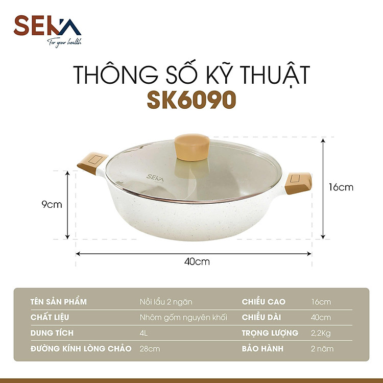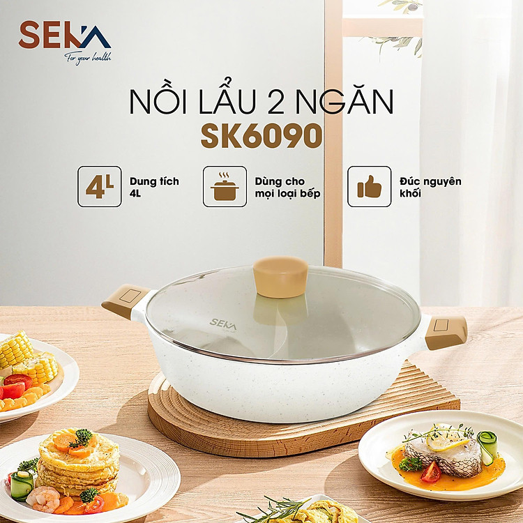 Giới thiệu Nồi lẩu 2 ngăn nhôm đúc nguyên khối Seka 28cm- dùng được trên mọi loại bếp