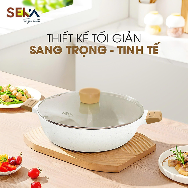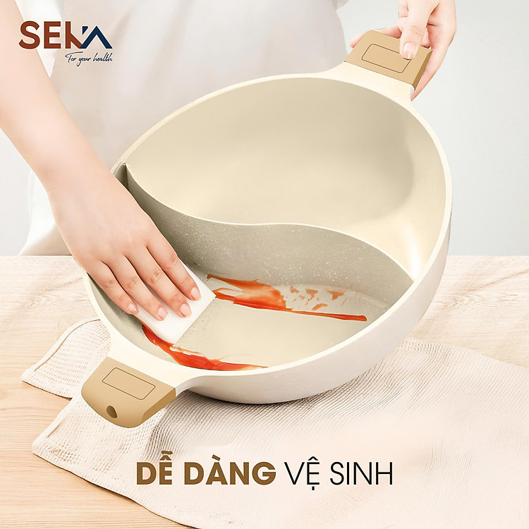 Nồi lẩu 2 ngăn nhôm đúc nguyên khối Seka 28cm- dùng được trên mọi loại bếp