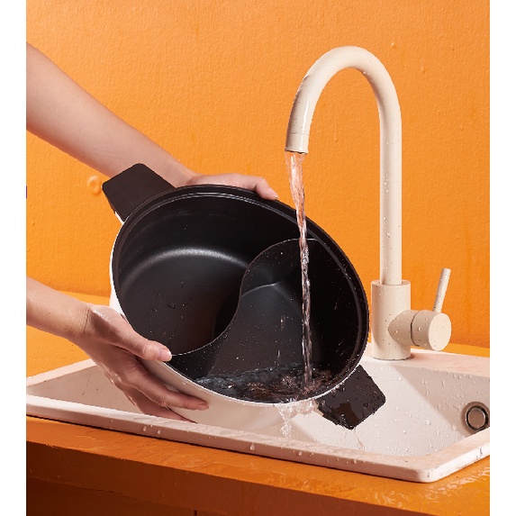 >Nồi lẩu 2 ngăn Xiaomi Zhiwu Zhu ZGYY001ACM thiết kế nguyên khối, dẫn nhiệt đồng đều. Có lớp chống dính hiệu quả và an toàn vệ sinh thực phẩm.