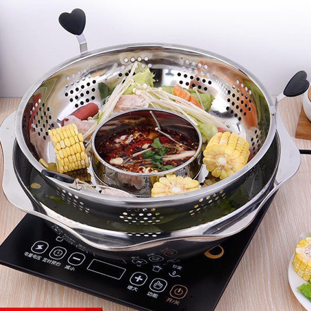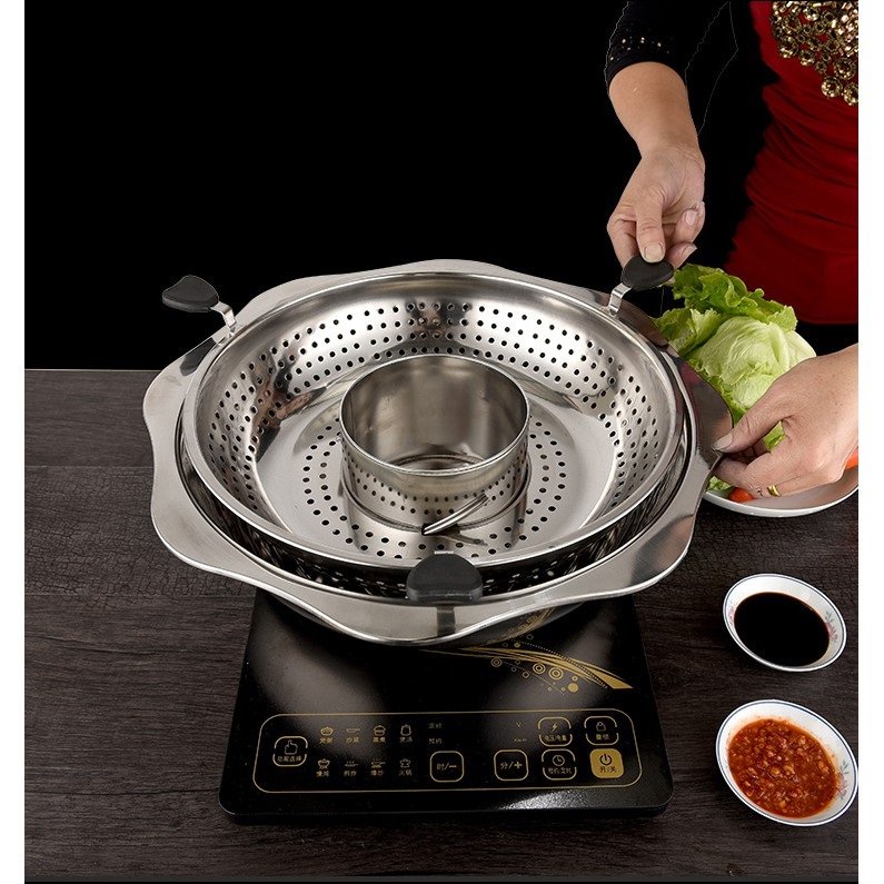 Thiết Bị Điện Gia Dụng > Đồ gia dụng nhà bếp > Nồi nấu đa năng || Nồi lẩu 2 tầng xoay size lớn 32 cm Nồi lẩu inox 2 tầng dùng được cả bếp từ và bếp gas phù hợp 4 - 6 ngườiCòn hàng