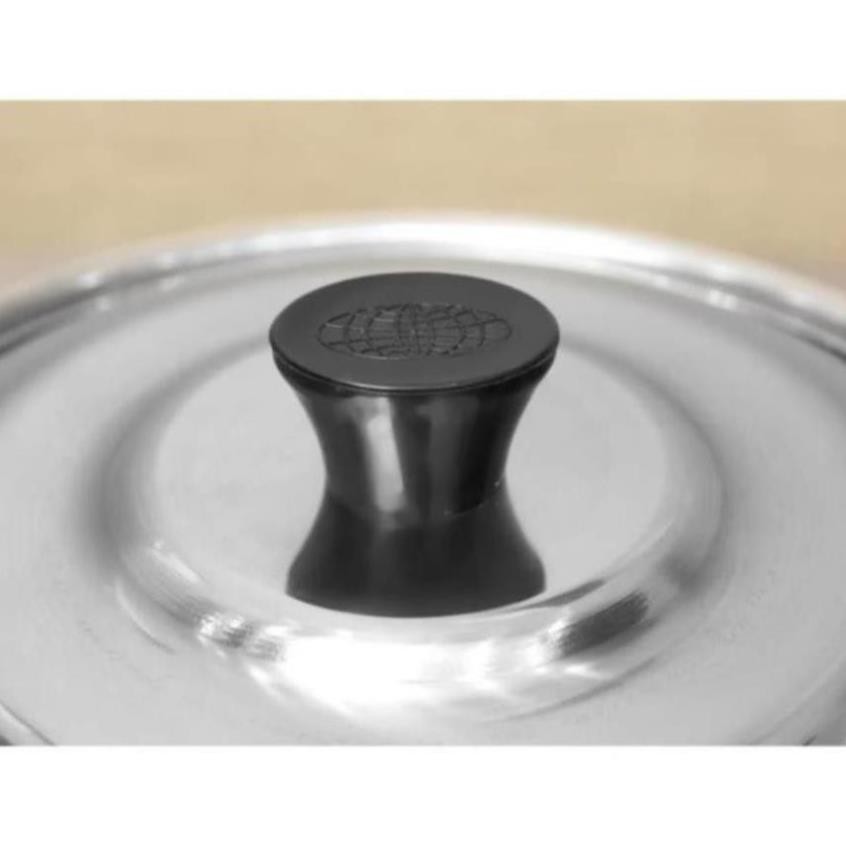 - Nắp nồi bằng inox đồng bộ, đậy khít và bảo vệ thực phẩm khỏi bụi bẩn hiệu quả. Núm cầm trên nắp nồi thiết kế dạng tròn, được bọc nhựa chịu nhiệt, giúp bạn dễ dàng cầm nắm khi nấu nướng. Nồi có tay cầm với kích thước vừa phải, thuận tiện sử dụng và thao tác khi nấu.