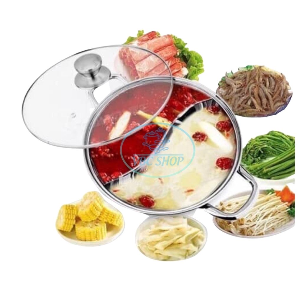 - Nồi lẩu 2 ngăn size 32 cm có nắp kính sẽ giúp sôi nhanh hơn.