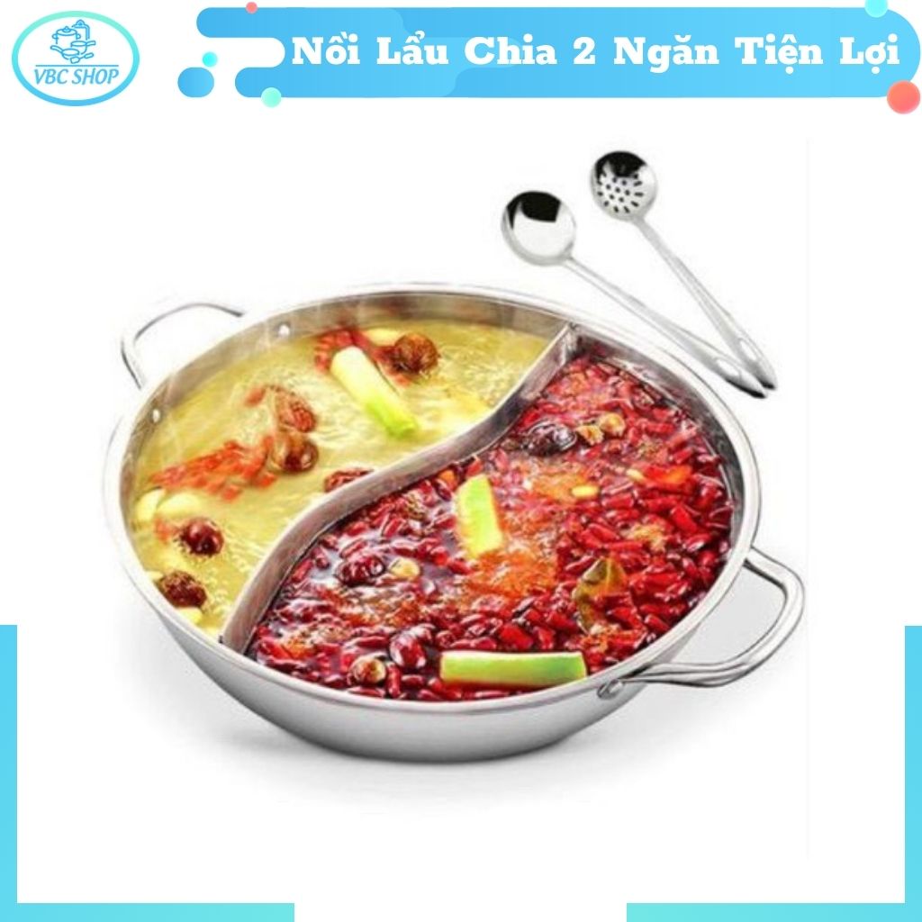 - Nồi lẩu inox 2 ngăn có thể sử dụng được trên bếp ga, bếp từ, thiết kế nắp đậy bằng kim loại vừa khít, sạch sẽ, tiện dụng, giúp công việc nội trợ trở nên dễ dàng hơn.