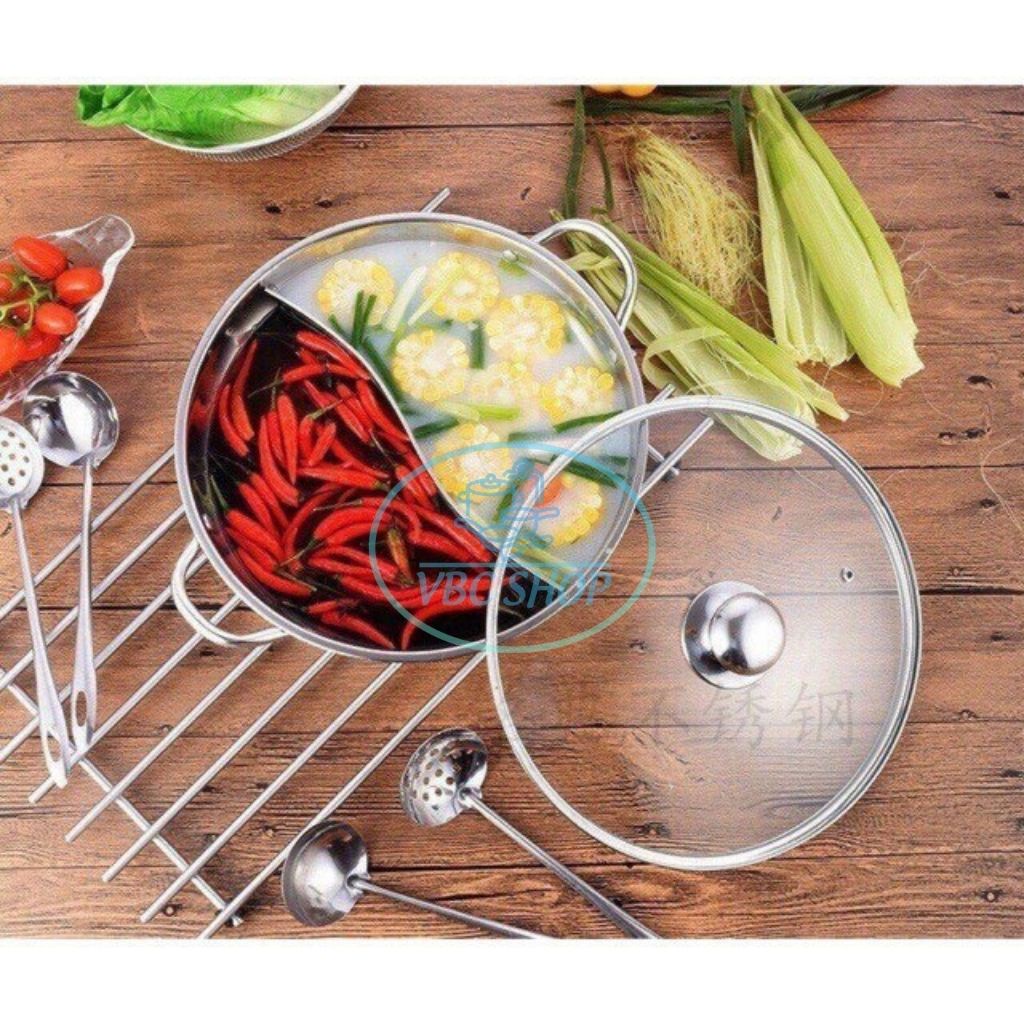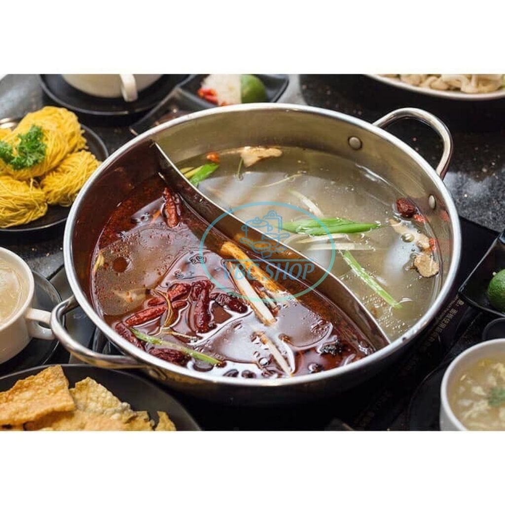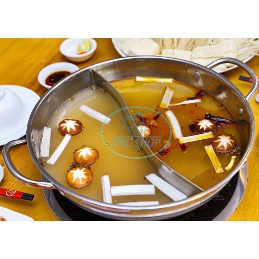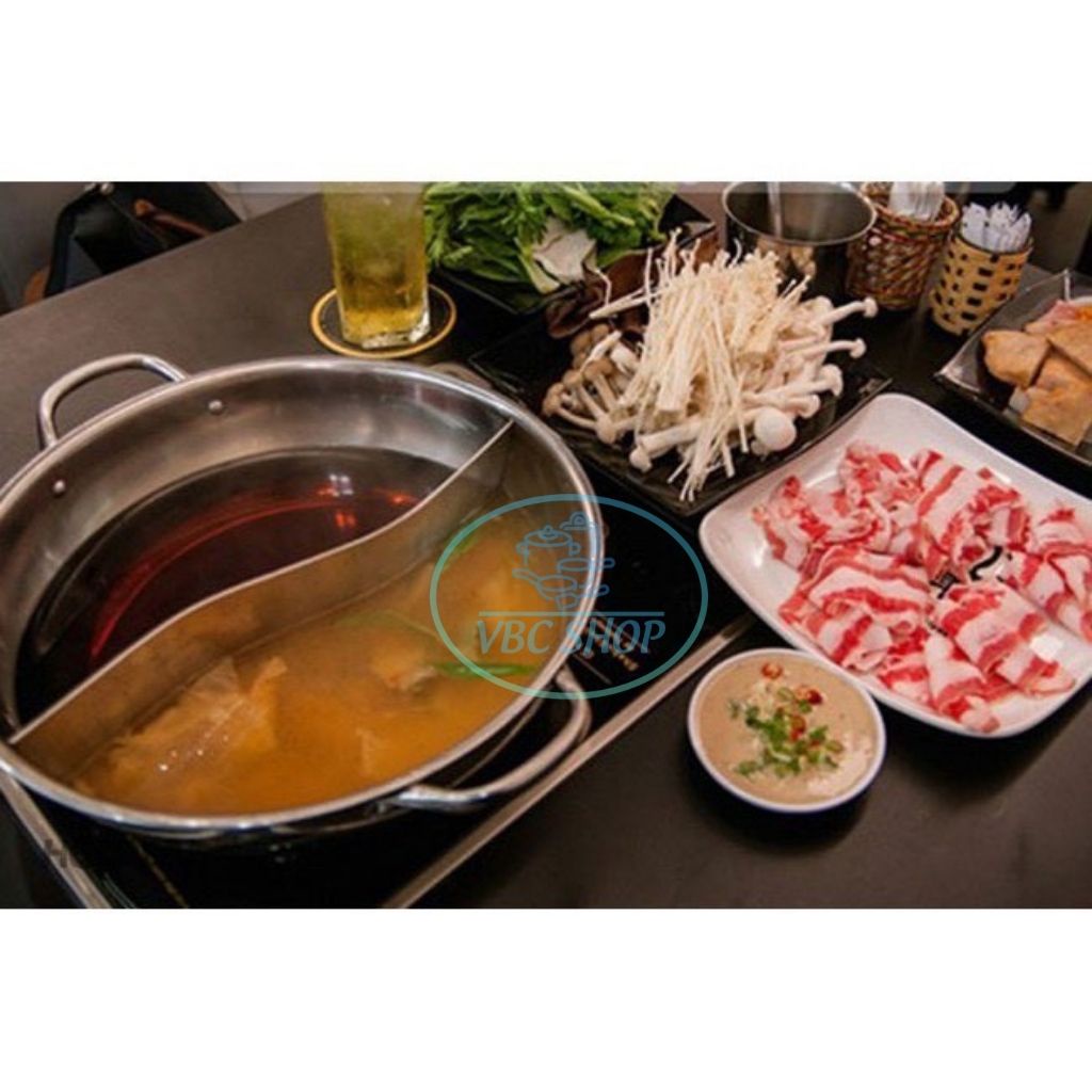 ✔ THÔNG TIN SẢN PHẨM :- Nồi lẩu hai ngăn bằng inox loại dày dặn, nấu được trên bếp từ