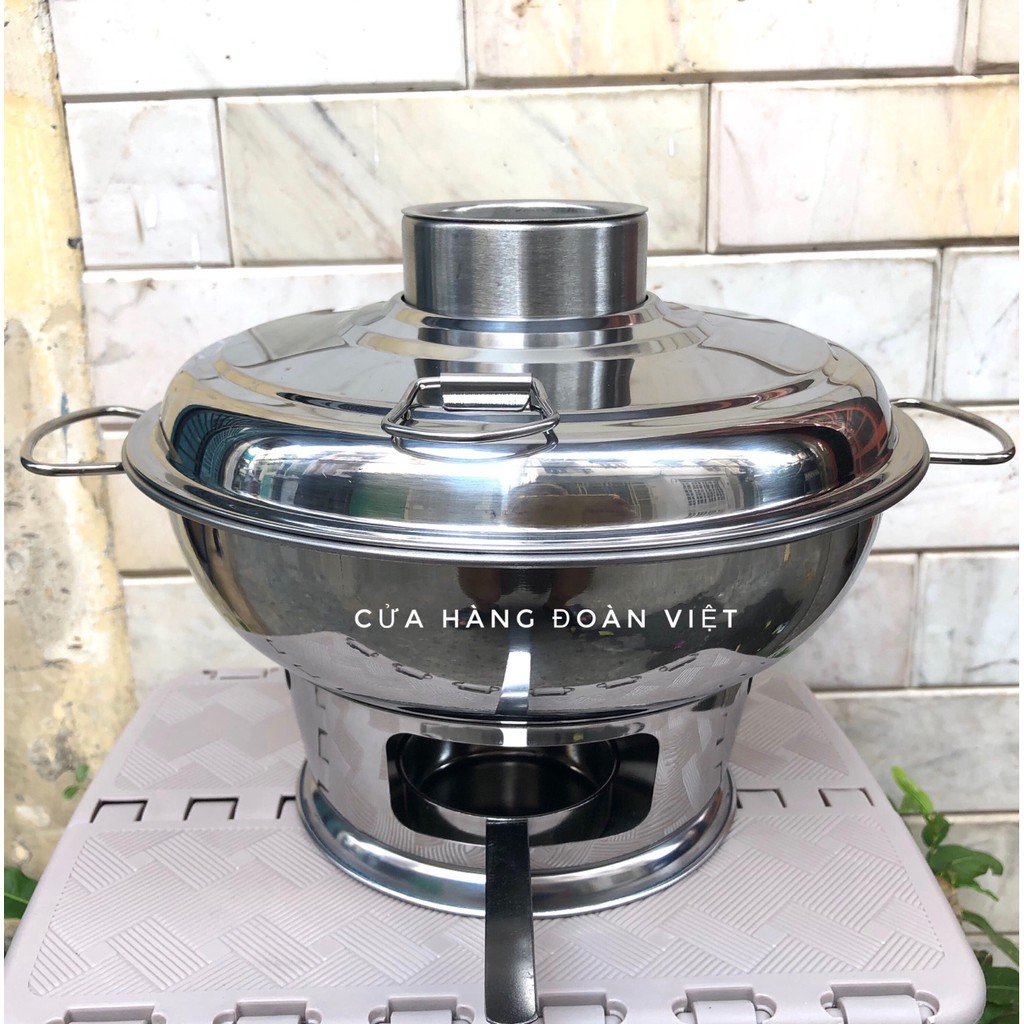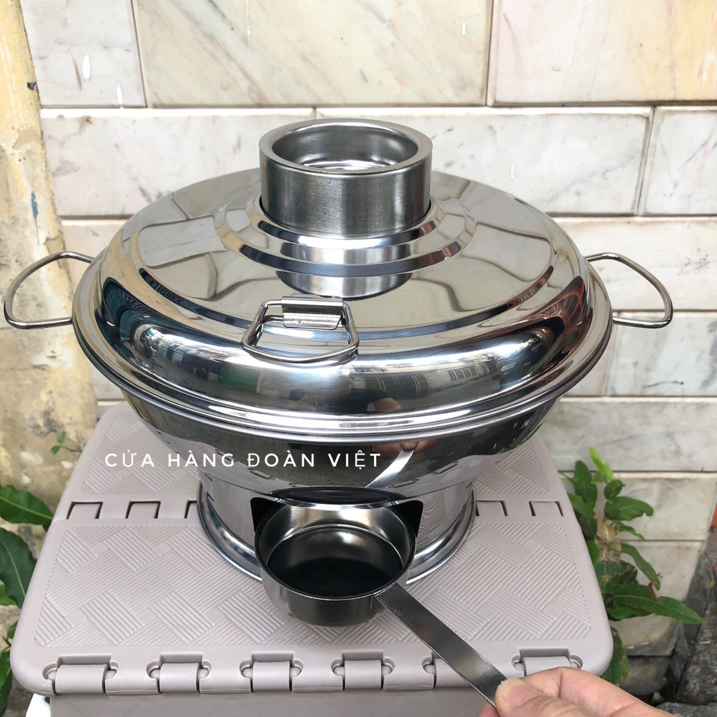 Nồi lẩu CÙ LAO, LẨU NÚI LỬA [INOX] sử Dụng Than Hoặc Cồn có loại lớn size 24cm và 22cm