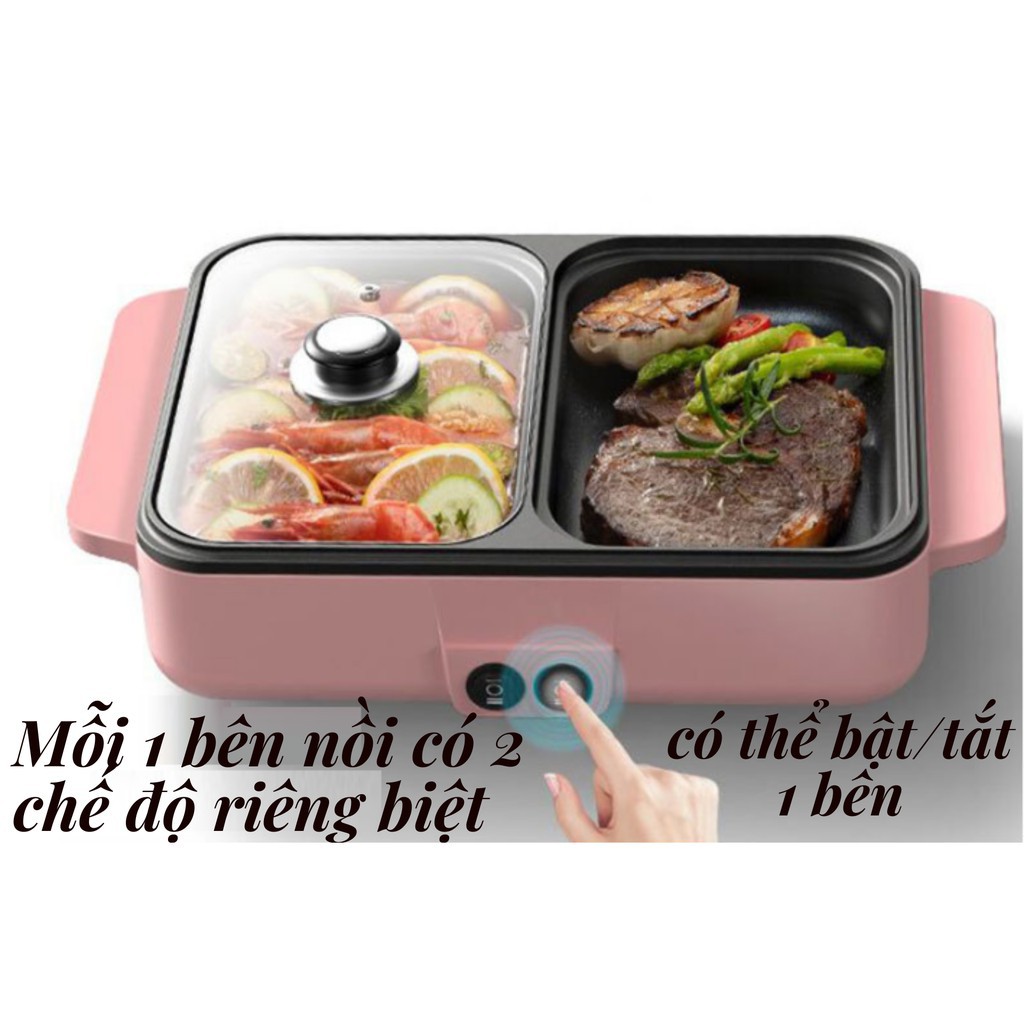Nồi Lẩu Đa Năng 2 in 1 Có Tay Cầm Tiện Dụng, Nồi Lẩu Nướng Mini 2 ngăn Cao Cấp Bảo hành 6 tháng