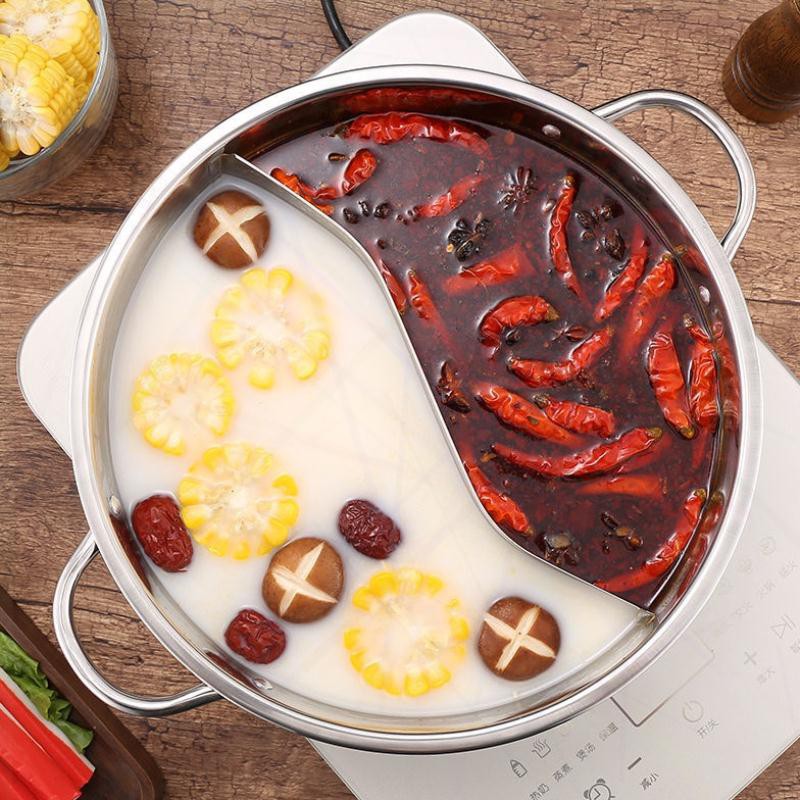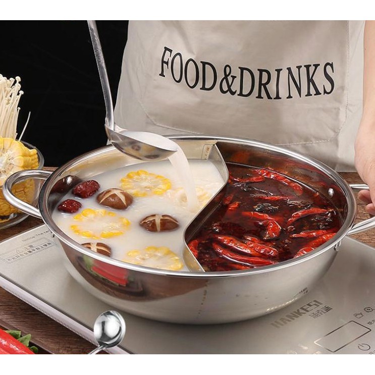 Nồi lẩu 2 ngăn Inox 304 Size 32cm kèm vung kính - Nồi lẩu gia đình đa năng dùng cho mọi loại bếp🍀 Nồi Lẩu Inox 2 Ngăn Cao Cấp CM Tiện Dụng Có Thể Nấu 2 Món Lẩu 1 Lúc, Thuận Tiện Chế Biến Các Món Lẩu Uyên Ương.
