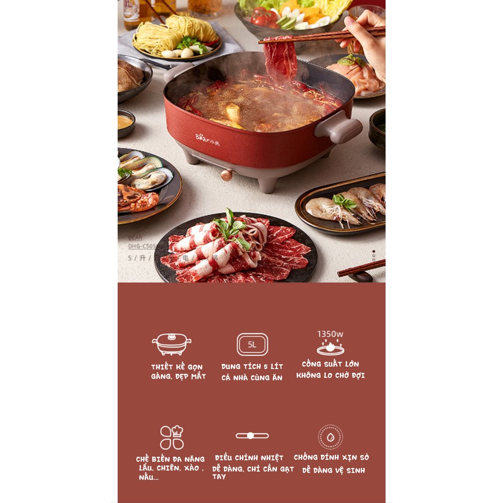 Giới thiệu [Mã ELHADEV giảm 4% đơn 300K] Nồi lẩu đa năng 5 lít BEAR DHG-C50S8 (bảo hành 12 tháng)