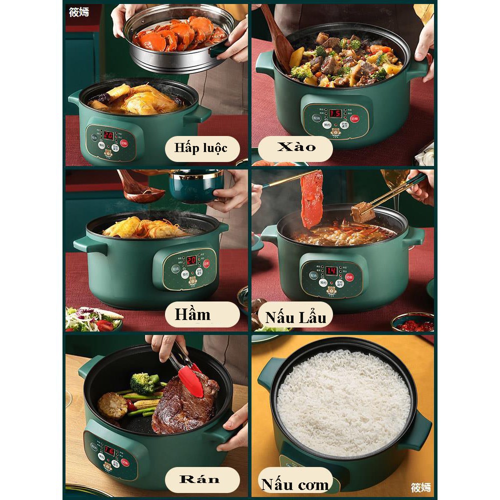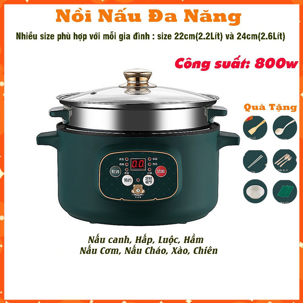 Nồi lẩu đa năng kèm xửng hấp chuyên xào nấu hấp công suất 800W tặng kèm bộ phụ kiện nấu ăn