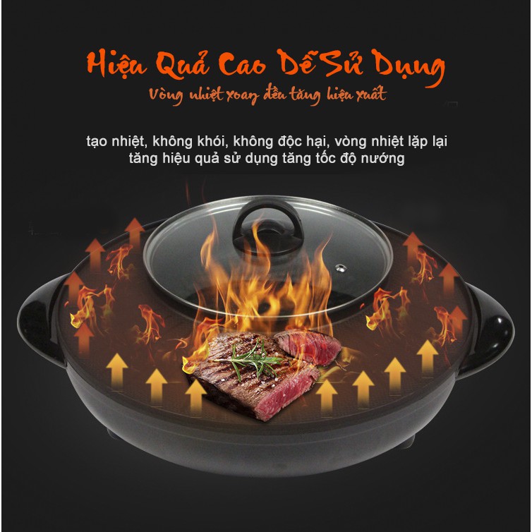 ☑️ Với bếp lẩu nướng tròn 2 in1, người sử dụng có thể vừa nướng nhiều loại thức ăn và đồng thời nấu lẩu cùng một lúc. Đây là thiết bị rất hữu ích trong các gian bếp gia đình để giúp bạn chế biến những món ăn ngon cho gia đình bạn.