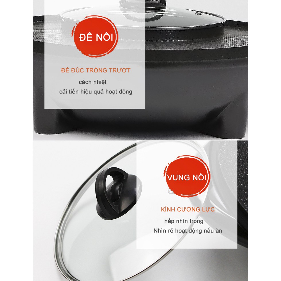 Nồi Lẩu Đa Năng Kiêm Bếp Nước 2in1 - Công Suất 1600W - Chống Dính Cao Cấp - Bảo Hành 6 Tháng 1 Đổi 1