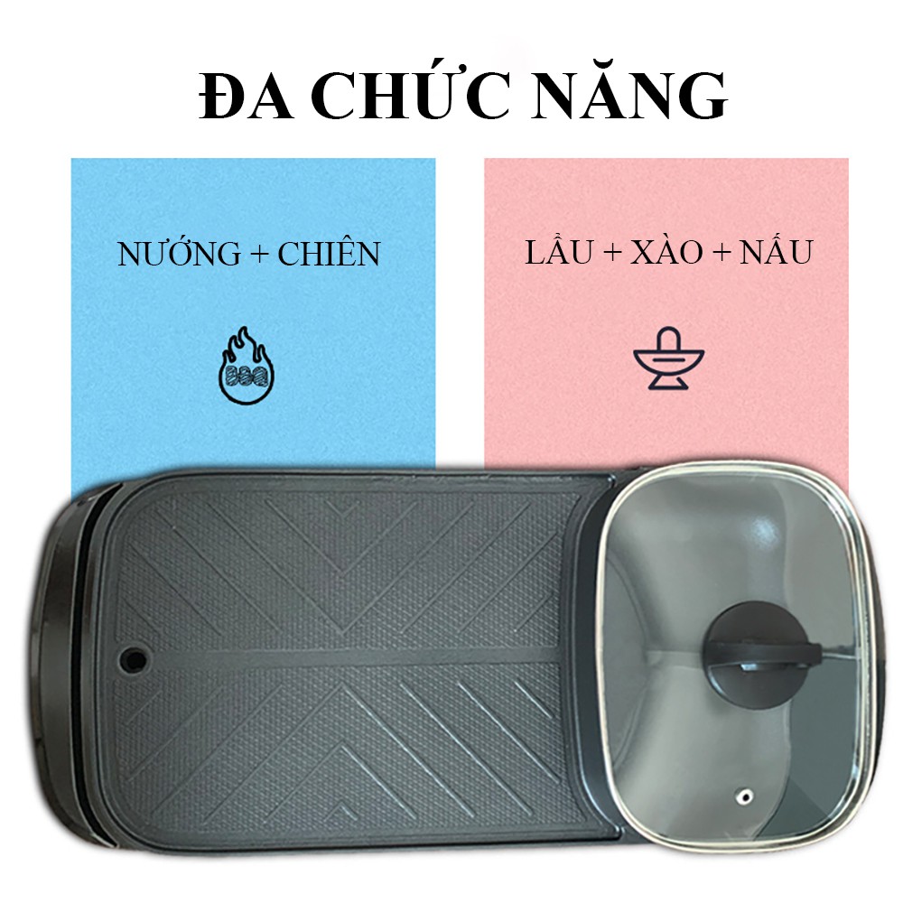Nồi lẩu đa năng lẩu, nướng kiểu Hàn, bếp nướng đa năng công suất lớn, 5 mức điều chỉnh nhiệt thông minh, chống dính