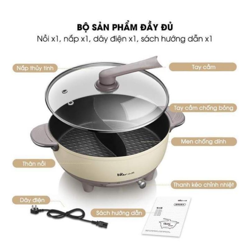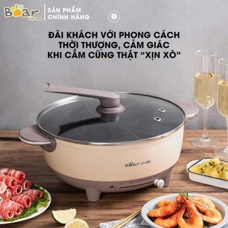 NỒI LẨU ĐIỆN 2 NGĂN ĐA NĂNG NỒI LẨU UYÊN ƯƠNG BEAR BẢN QUỐC TẾ, BẢO HÀNH 18 Tháng CHÍNH HÃNG - DHG B60R6