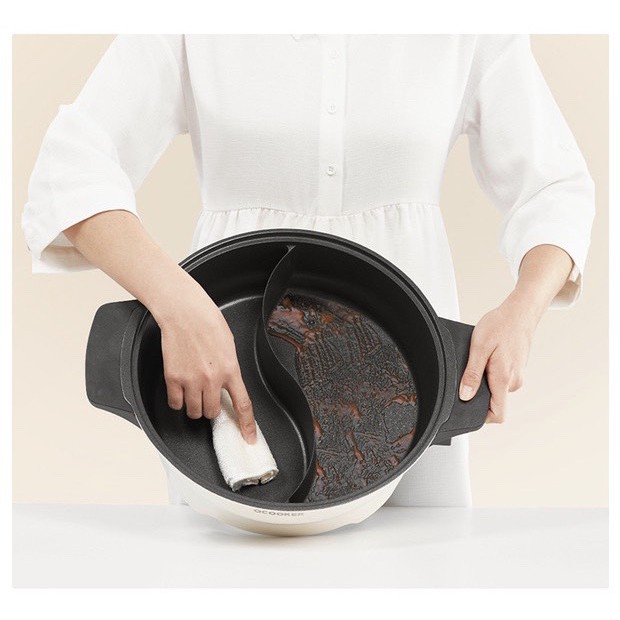 Một ưu điểm khác biết của oCooker CR-HG03 so với các loại nồi lẩu thông thường chính là thiết kế 2 ngăn vô cùng tiện dụng. Với kết cấu này bạn có thể linh hoạt chế biến các hương vị lẩu khác nhau đáp ứng đầy đủ khẩu vị của mọi thành viên, góp phần làm phong phú bữa ăn cho gia đình.