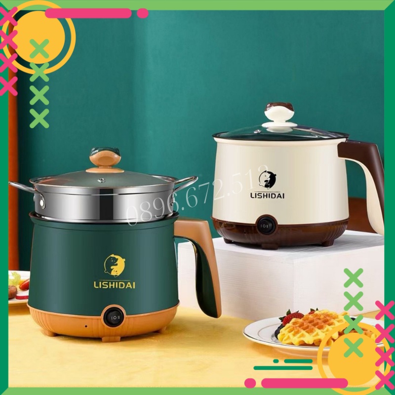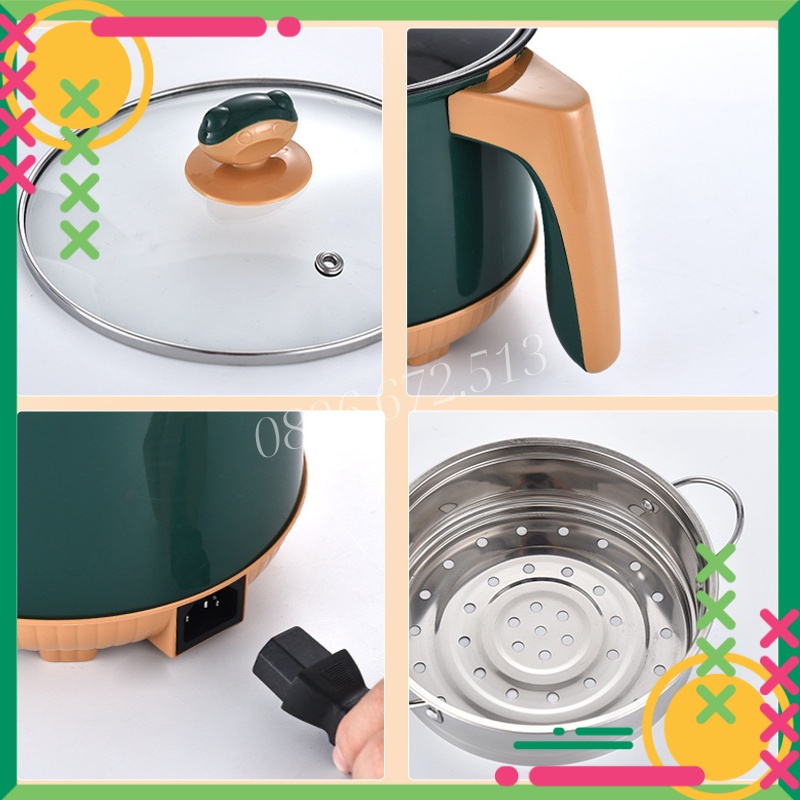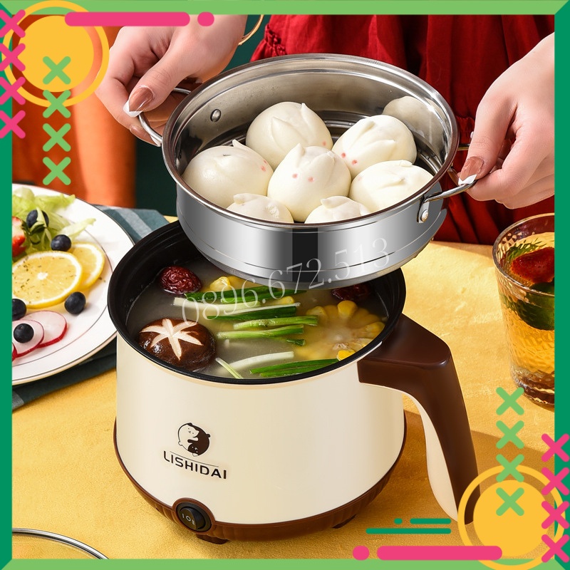 Nồi Lẩu Điện 2 Tầng Mini Chống Dính Tặng Khay Hấp (Lẩu, Chiên, Xào, Rán, Nấu Cơm), Ca Nấu Mì Mini Đa Năng