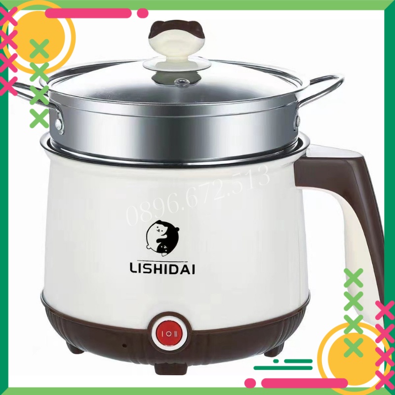 Giới thiệu Nồi Lẩu Điện 2 Tầng Mini Chống Dính Tặng Khay Hấp (Lẩu, Chiên, Xào, Rán, Nấu Cơm), Ca Nấu Mì Mini Đa Năng