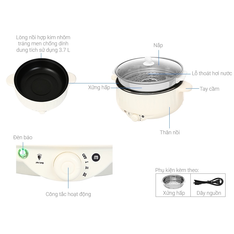 Giới thiệu [Mã ELHADEV giảm 4% đơn 300K] Nồi lẩu điện 4.0L kèm xửng hấp inox