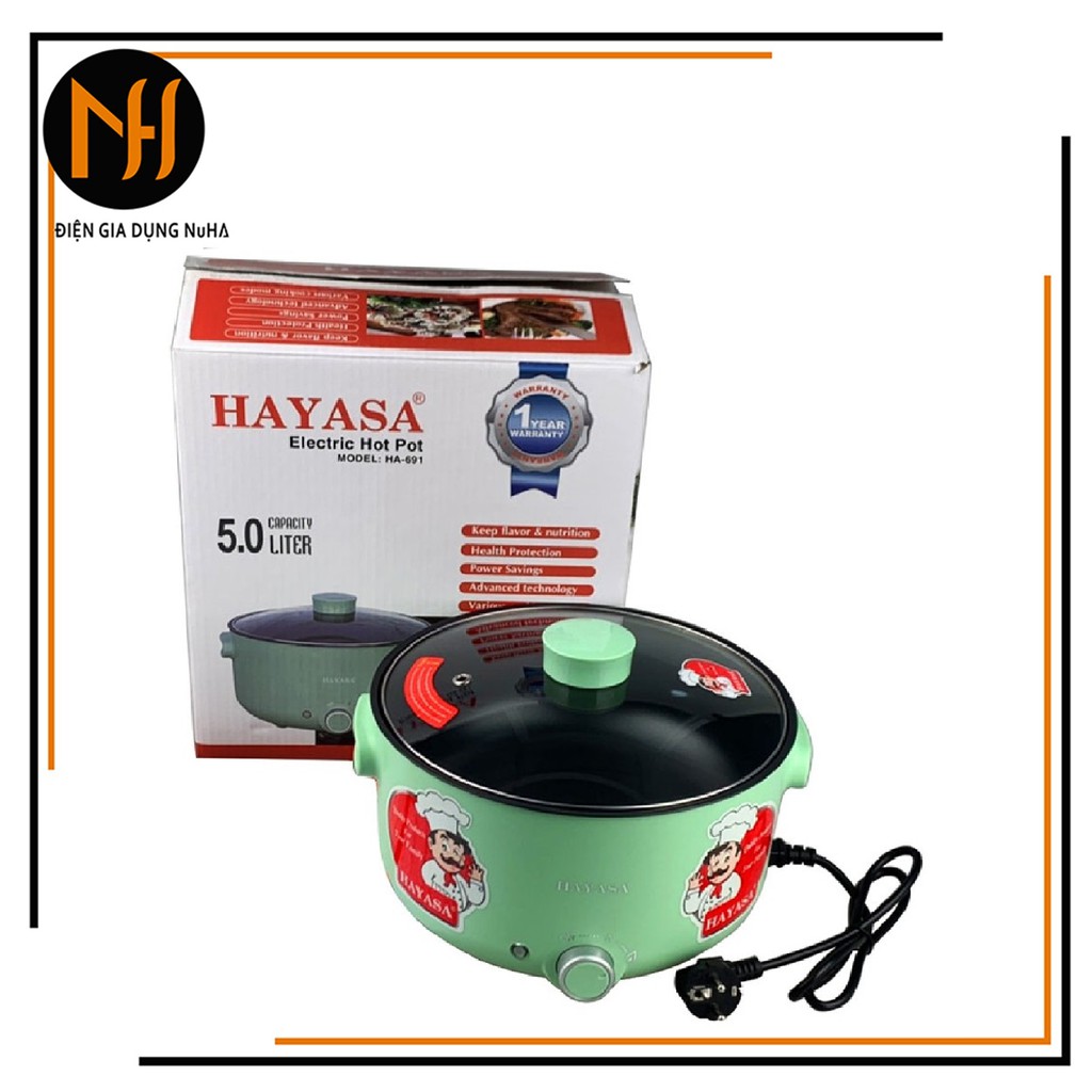 Nồi Lẩu Điện 5L Hayasa Ha-691 Đa Năng Chống Dính Công Suất 1300W Nấu Lẩu,Nấu Mì,Chiên,Xào,Nấu Thức Ăn