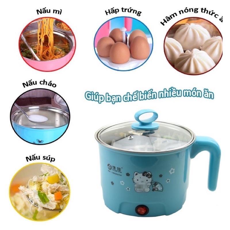 Nồi lẩu điện ca mì mini tiện dụng 18cm 2 lớpCó hai lớp,lớp trong là inox,lớp ngoài là nhựa chống nóng.