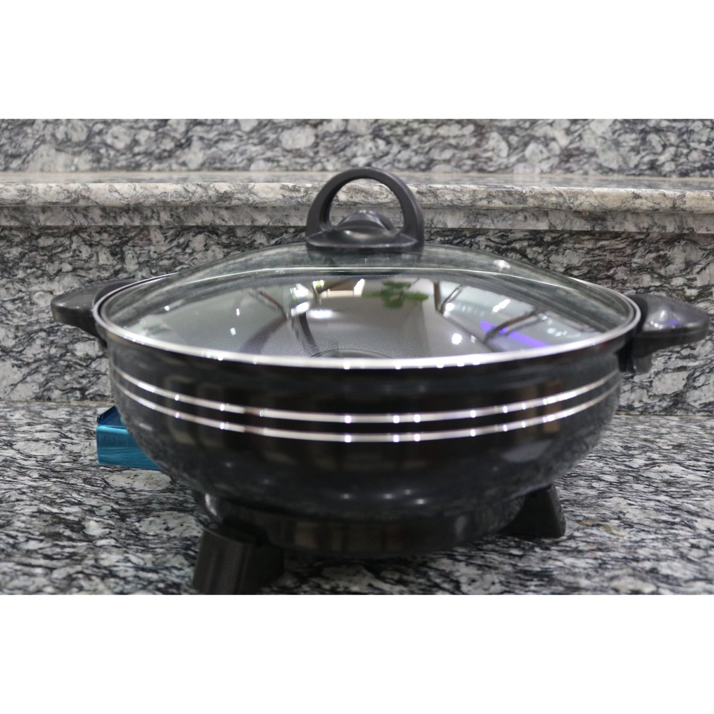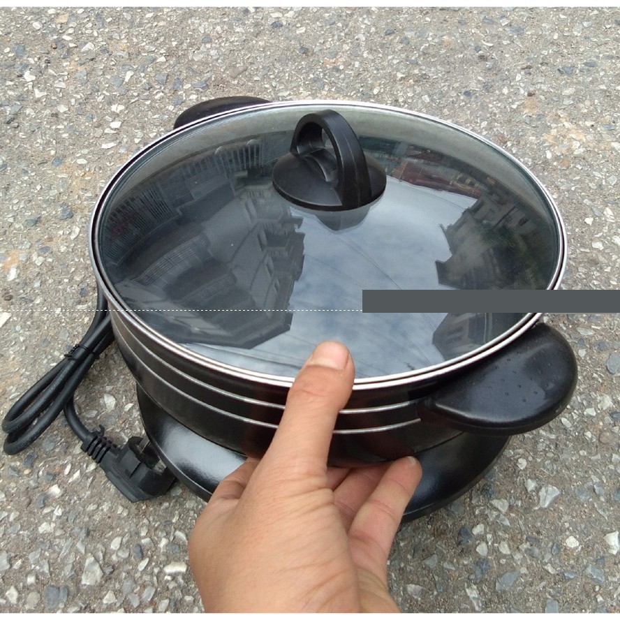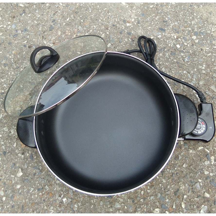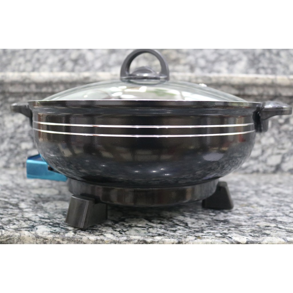 🍀🍀🍀 Nồi Lẩu Điện - Chảo Điện Đa Năng Đế Liền An Toàn - Tiện Ích 🍀🍀🍀- Chảo lẩu điện với thiết kế kiểu dáng sang trọng cùng khả năng chống dính gấp 3 lần so với các loại chảo khác là sản phẩm tiện lợi thay thế cho những chiếc chảo cũ của bạn thường làm thức ăn bị cháy khét, các món chiên xào lại phải tốn nhiều dầu mỡ. Đặc biệt sản phẩm được thiết kế đa năng với chiều sâu lớn sẽ giúp bạn thoải mái thao tác mà không sợ thực phẩm bị bắn ra ngoài. Chảo điện đa năng được thiết kế và sản xuất từ chất liệu cao cấp nhôm nguyên chất. Chảo sử dụng hệ thống đun nóng chất lượng cao làm nóng nhanh và đều giúp thực phẩm nhanh chín hơn, không bị cháy khét và đặc biệt là rất tiết kiệm điện. Phù hợp cho Học sinh, sinh viên, Gia đình nhỏ. Các cửa hàng làm bánh, làm bánh mì chảo…..
