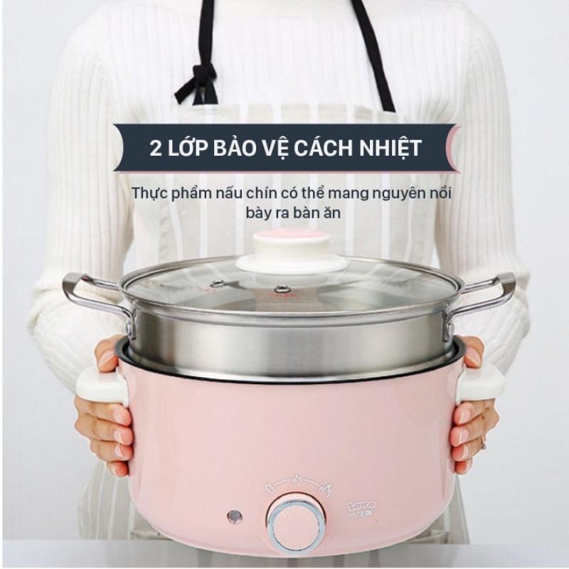 Nồi lẩu điện Chính hãng LOTOR dung tích 3L có trõ hấp tiện lợi, nồi lẩu mini công suất 900W - Lotor L015