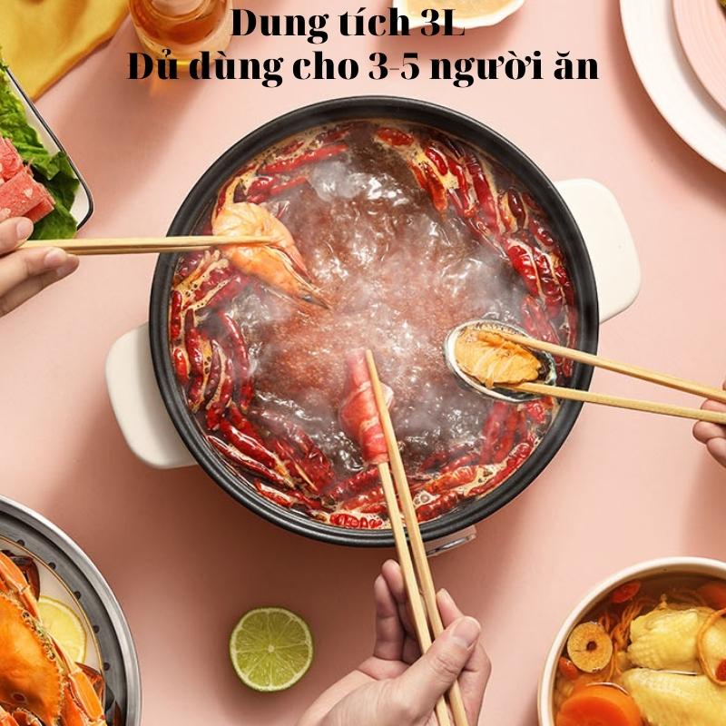 Nồi lẩu điện Lotor dung tích 3L có trõ hấp tiện lợi, nồi lẩu mini có thể điều chỉnh nhiệt công suất 900WMô tả sản phẩm: