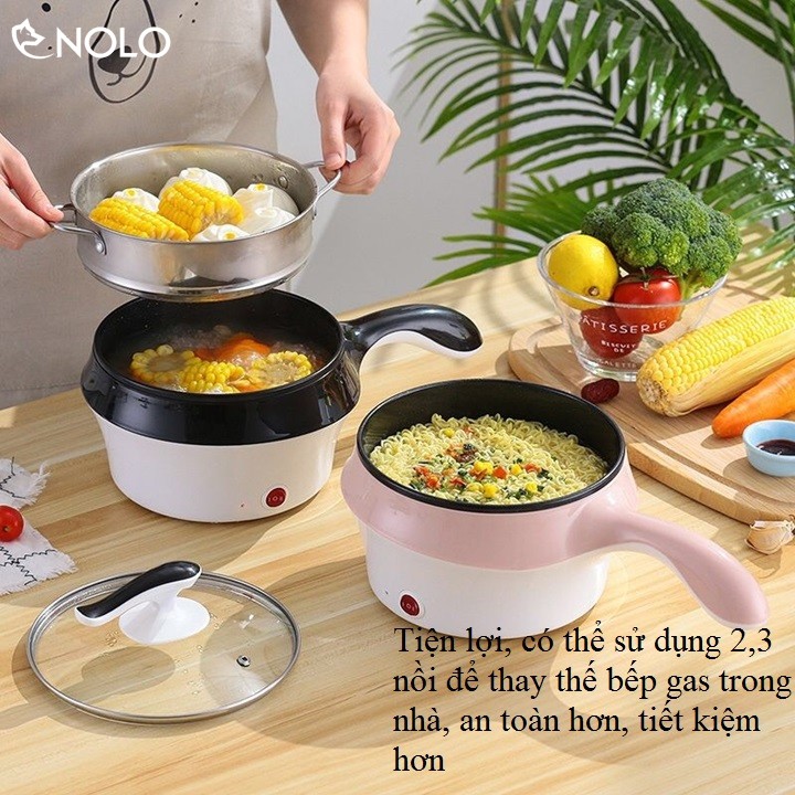 Nồi Lẩu Điện Chống Dính Có Kèm Xửng Hấp 3in1 Dung Tích 1,6L Công Suất Tối Đa 800W