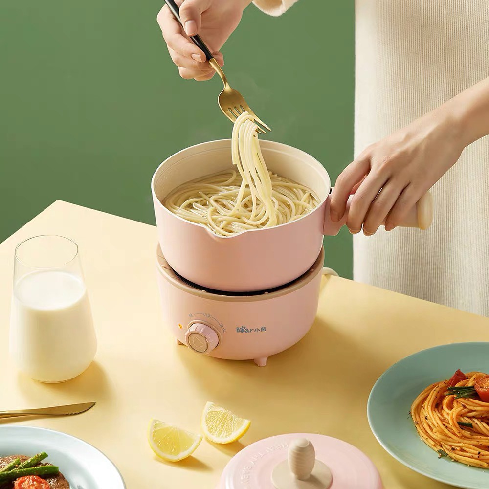 ✔️Thiết kế cực dễ thương với gam hồng nữ tính:✔️Đa năng: nồi lẩu điện, chảo điện, nấu nhiều món như mì, canh, cháo, xào, rán...