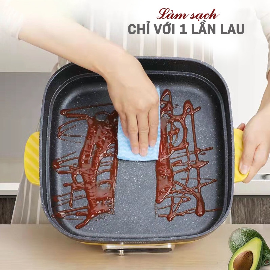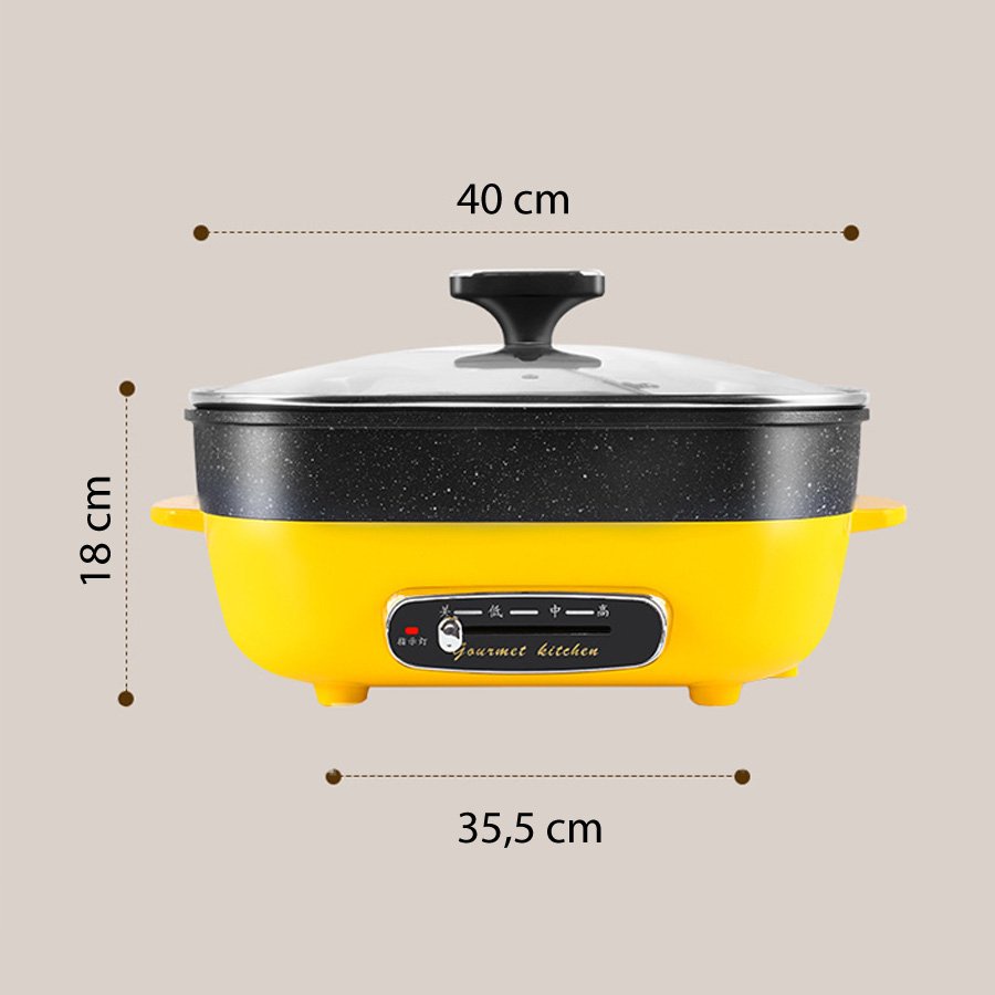 Nồi điện đa chức năng, nồi lẩu hình vuông, nồi chiên xào, dung lượng lớn 4.5L, chống dính, lau rửa dễ dàngNồi lẩu điện vuông HGJ-B30