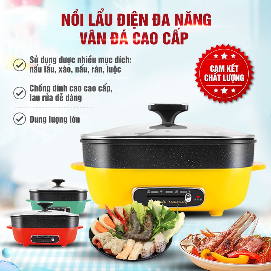 Nồi lẩu điện đa chức năng Bếp lẩu nướng vân đá chống dính chiên xào nấu, Bếp điện đa năng lau rửa dễ dàng