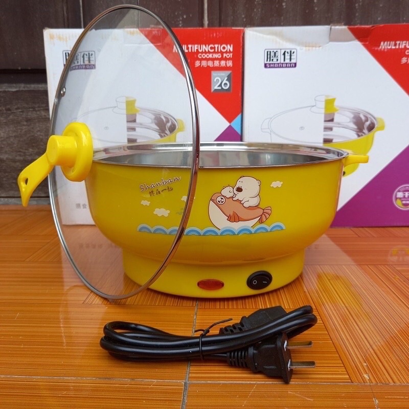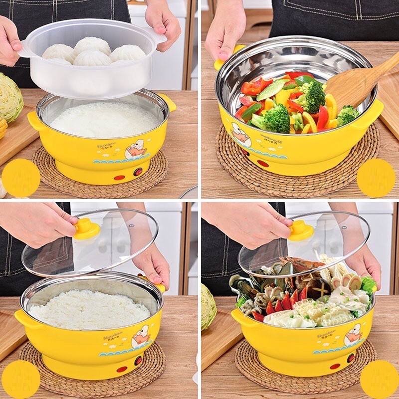 - Ca nấu mì, Nồi lẩu điện mini có vỉ hấp