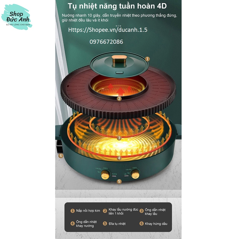 Nồi Lẩu Điện Đa Năng 2In1 Vừa Lẩu + Nướng Hình Tròn, Công Suất Lớn 2200W
