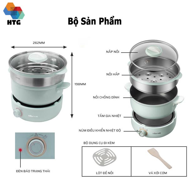 Giới thiệu Nồi Lẩu Điện Đa Năng 3 Tầng, 4 Trong 1 Bear DHG-B25B2 Bộ Full, Tặng Kèm Muôi Xúc Và Mút Đệm Đế, hàng chính hãng